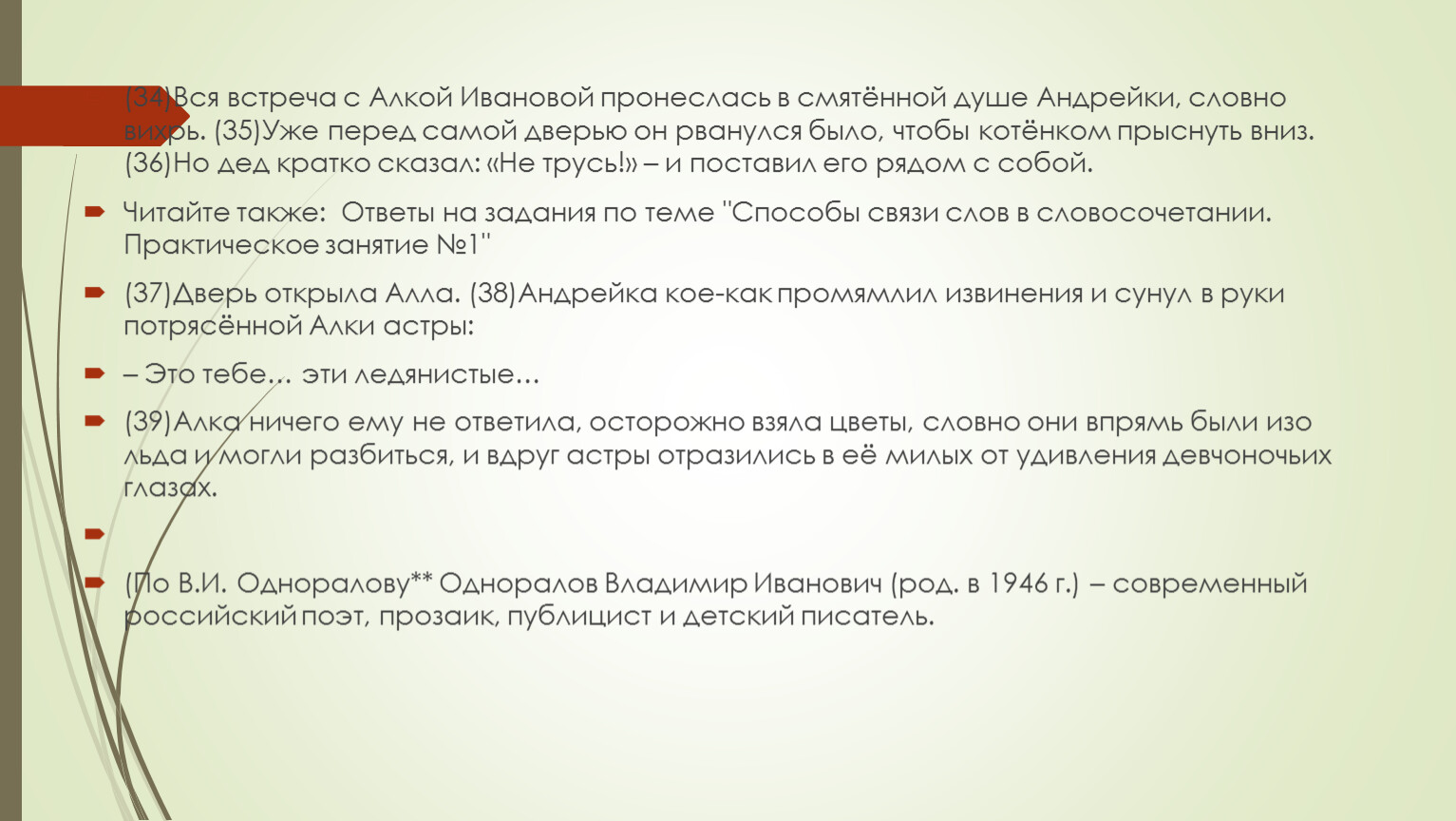 (По В.И. Одноралову** Одноралов Владимир Иванович (род. в 1946 г.) – современный российский поэт, прозаик, публицист и детский писатель.