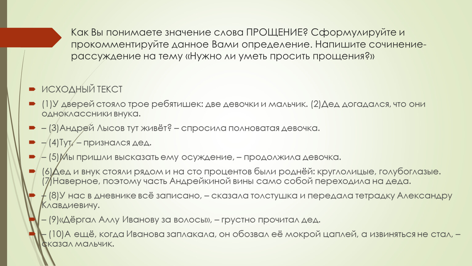 Как Вы понимаете значение слова ПРОЩЕНИЕ? Сформулируйте и прокомментируйте данное Вами определение. Напишите сочинение-рассуждение на тему «Нужно ли уметь просить прощения?»