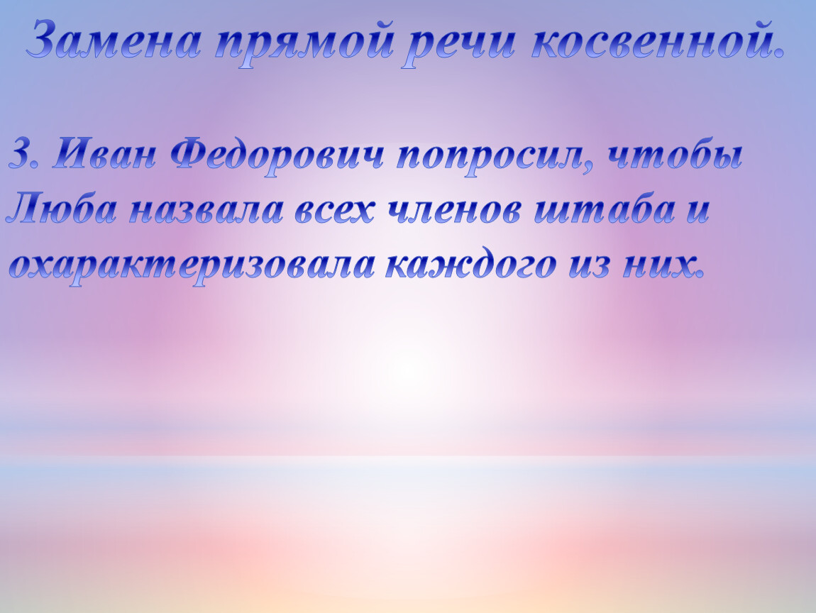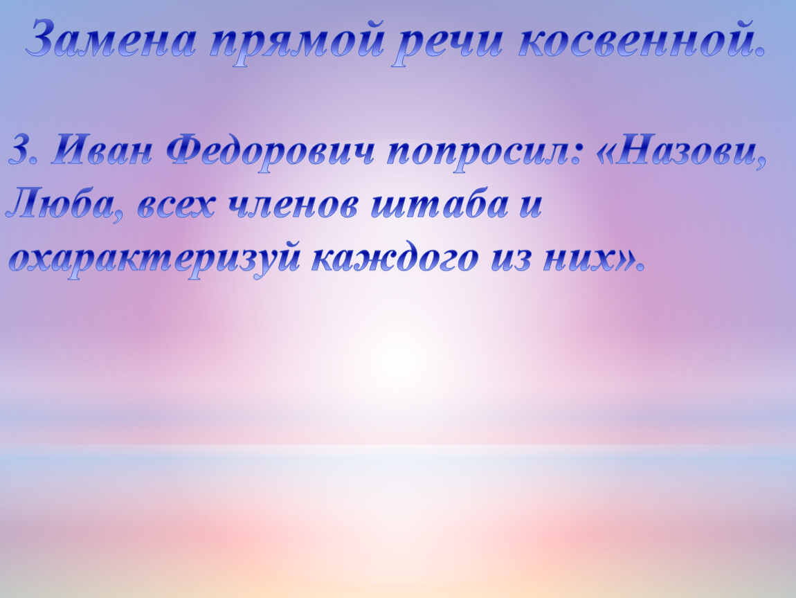 3. Иван Федорович попросил: «Назови, Люба, всех членов штаба и охарактеризуй каждого из них».