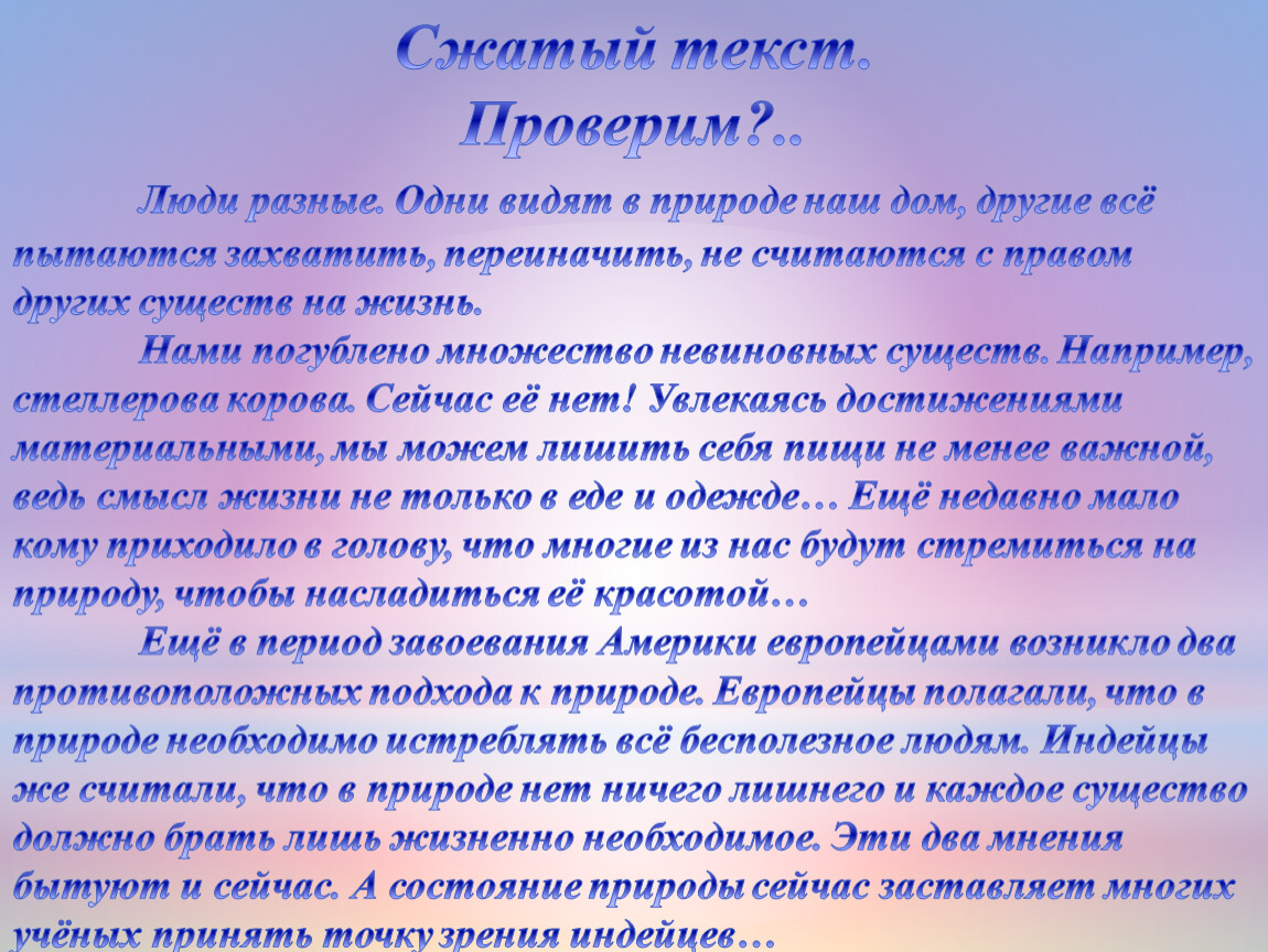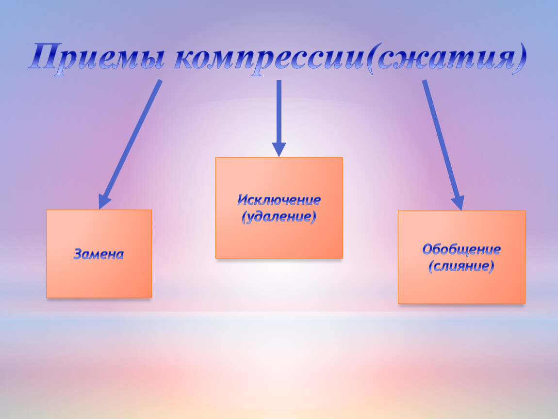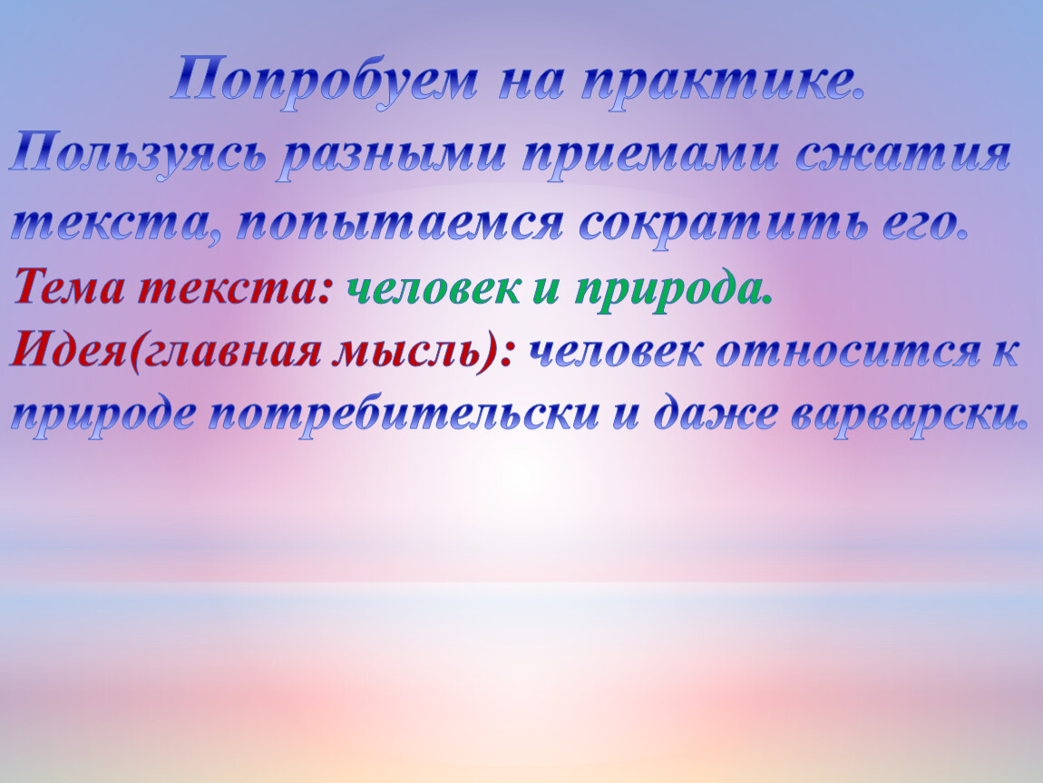Пользуясь разными приемами сжатия текста, попытаемся сократить его.