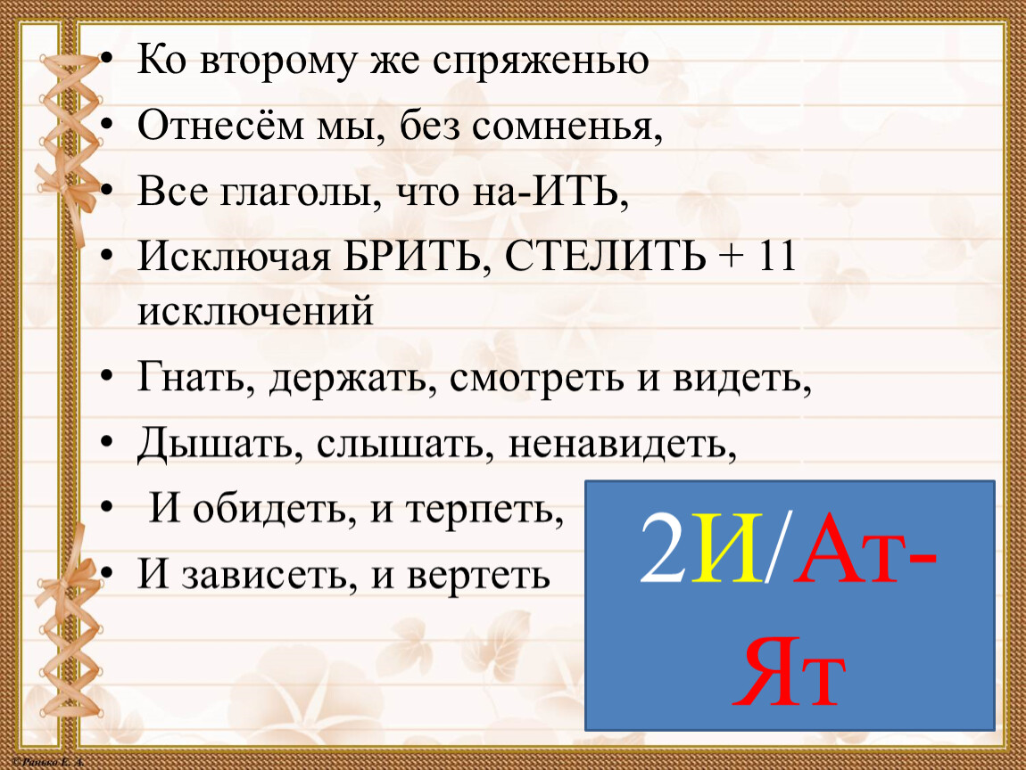 Ведущая гласная в личных окончаниях глаголов II спряжения - и
