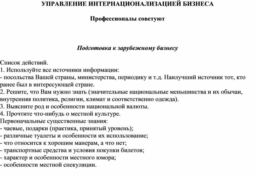 УПРАВЛЕНИЕ ИНТЕРНАЦИОНАЛИЗАЦИЕЙ БИЗНЕСА