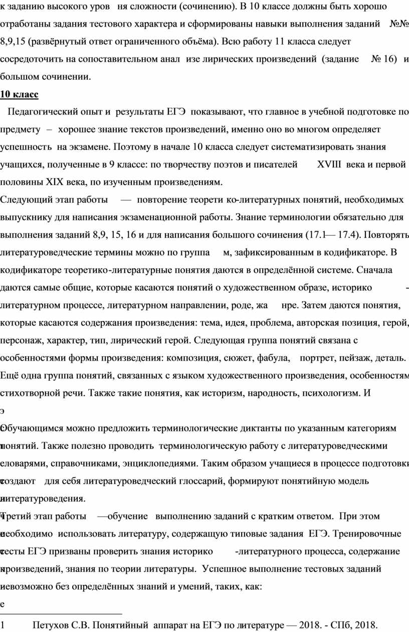 5. Петухов С.В. Понятийный аппарат на ЕГЭ по литературе — 2018. - СПб, 2018.