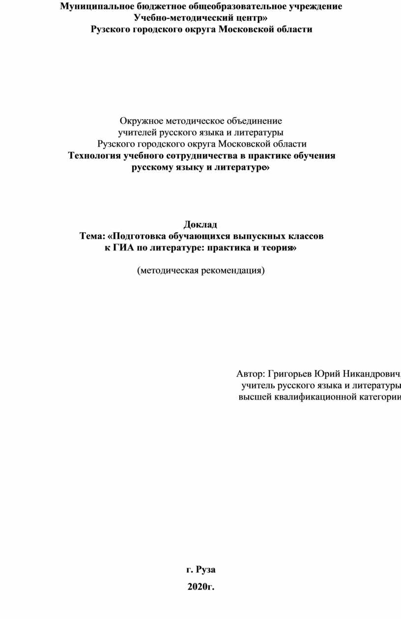 Подготовка обучающихся выпускных классов к ГИА по литературе: практика и теория.