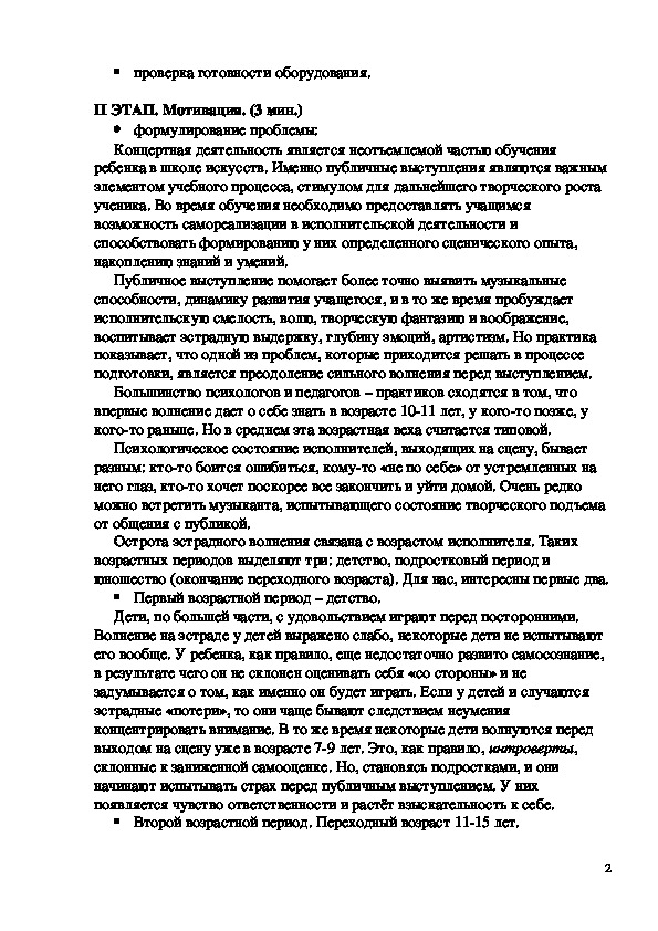 концертному выступлению. Преподаватель положительно мотивирует