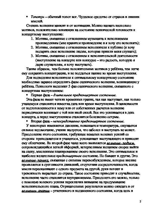 5) Федорова А. «К вопросу о преодолении сценического волнения»