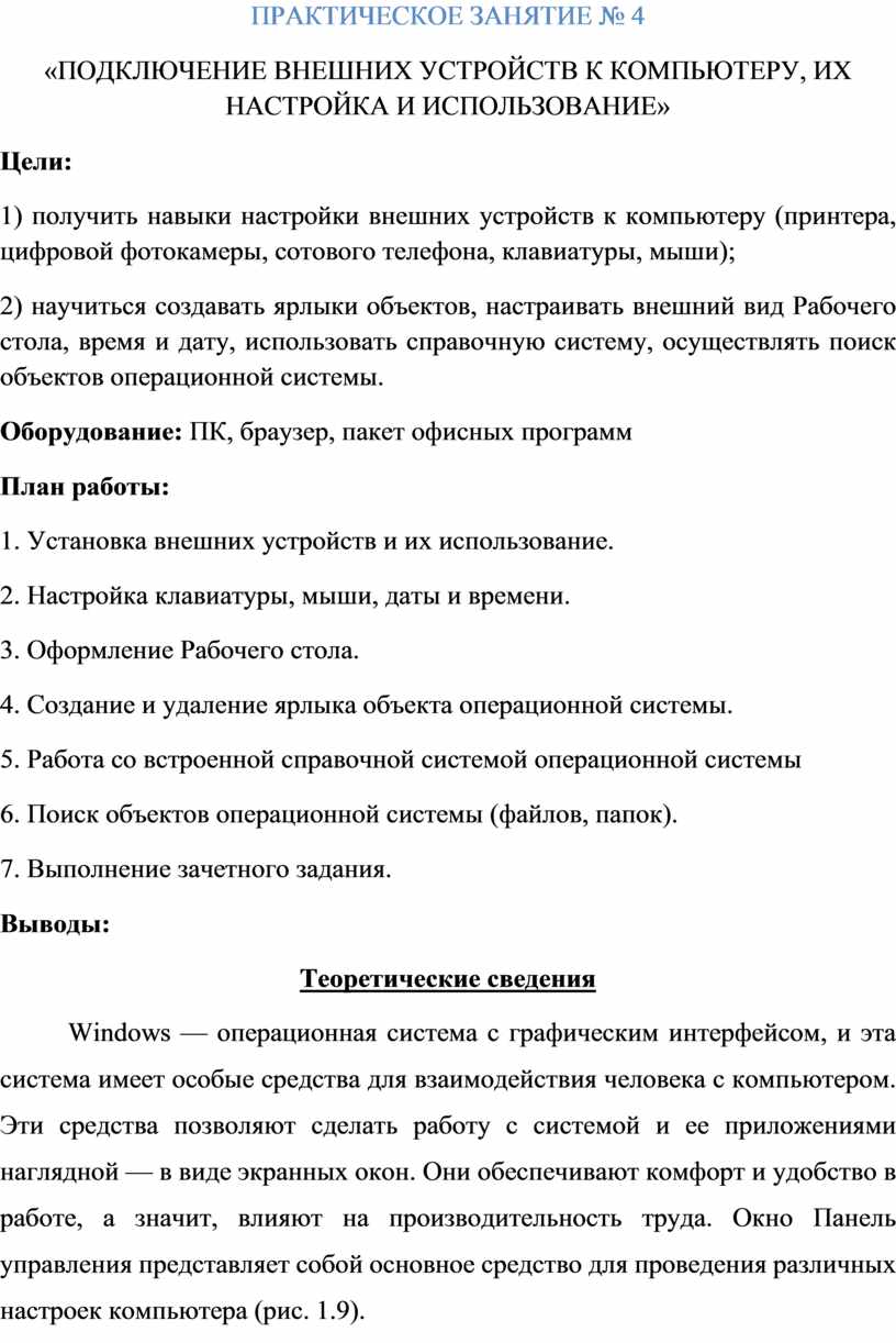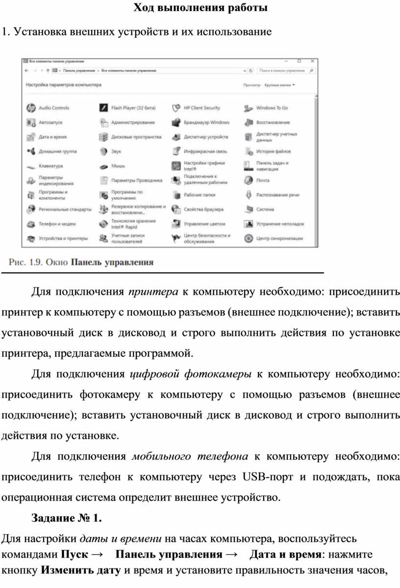 1) получить навыки настройки внешних устройств к компьютеру (принтера, цифровой фотокамеры, сотового телефона, клавиатуры, мыши);