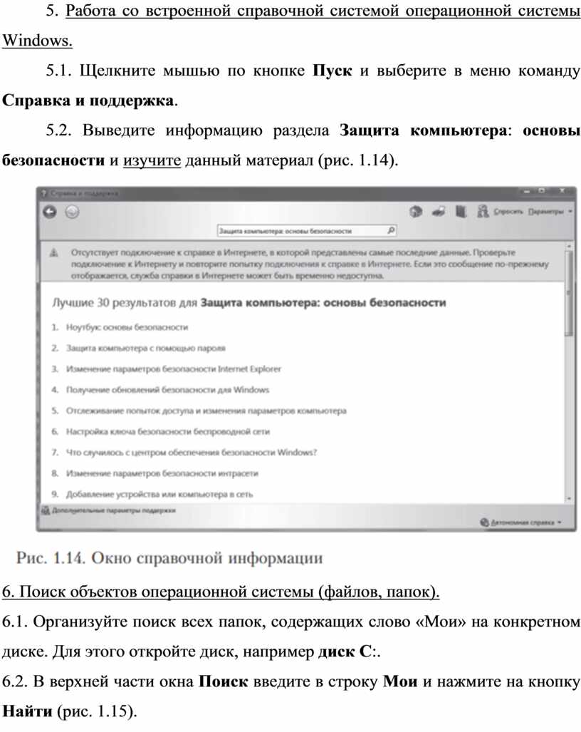 5. Работа со встроенной справочной системой операционной системы