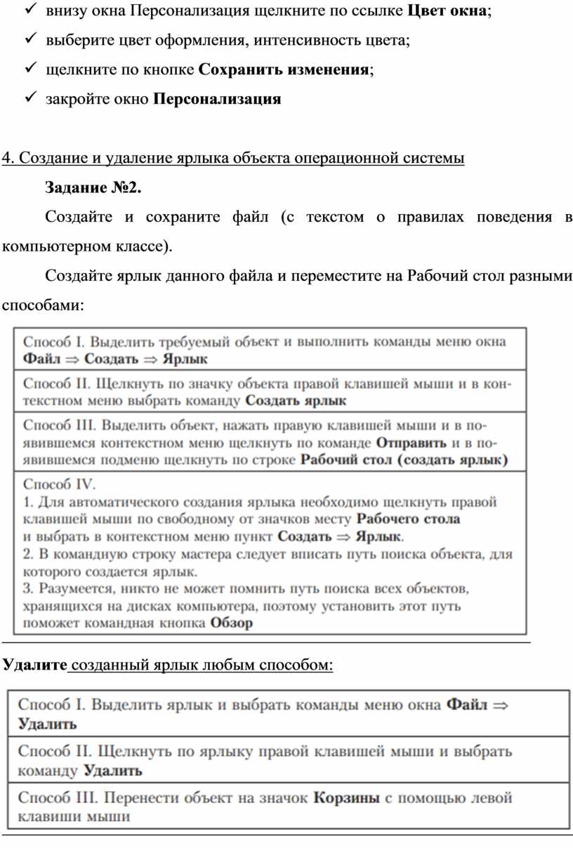 4. Создание и удаление ярлыка объекта операционной системы