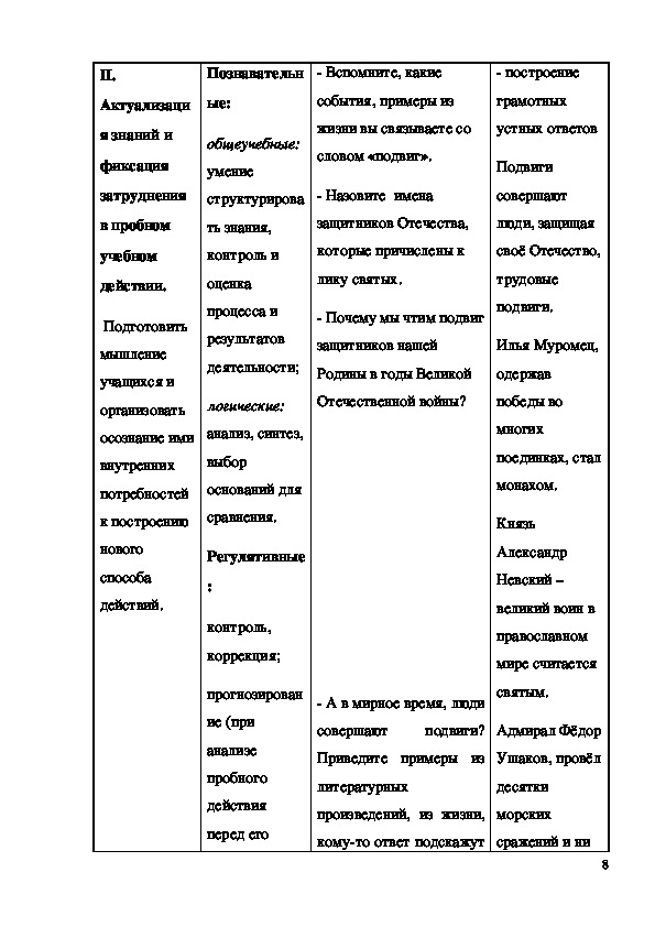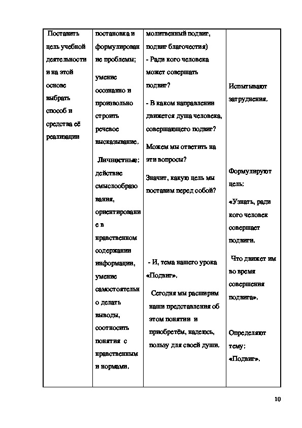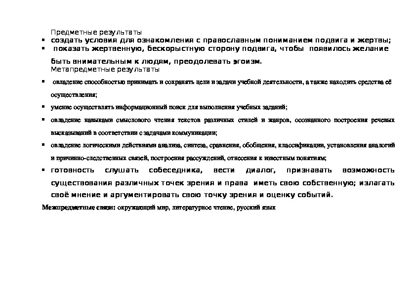 - создание условий для ознакомления с православным пониманием подвига и жертвы;