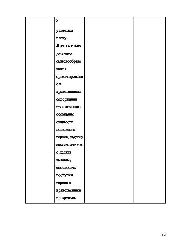 • ориентирование в нравственном содержании прочитанного, осознание сущности поведения героев, умение соотносить поступки героев с нравственными нормами.