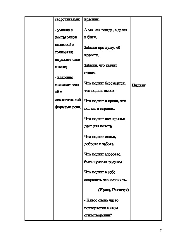 - раскрытие жертвенной, бескорыстной стороны подвига;