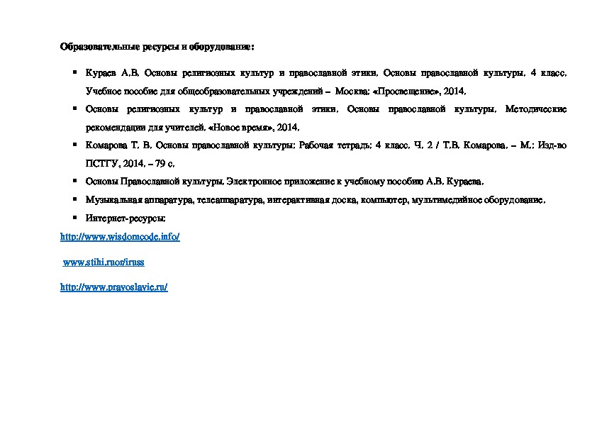 Основы религиозных культур и православной этики. Основы православной культуры. Методические