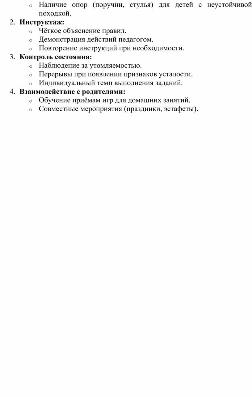6. Вариативность: модификация правил под возможности участников (например, замена бега на ходьбу).