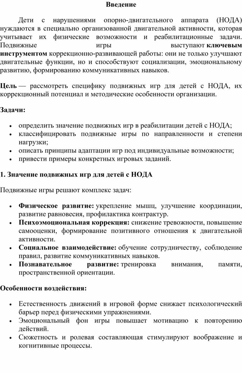 Цель — рассмотреть специфику подвижных игр для детей с НОДА, их коррекционный потенциал и методические особенности организации.