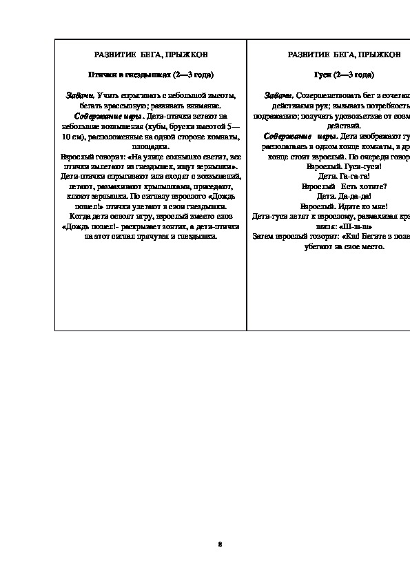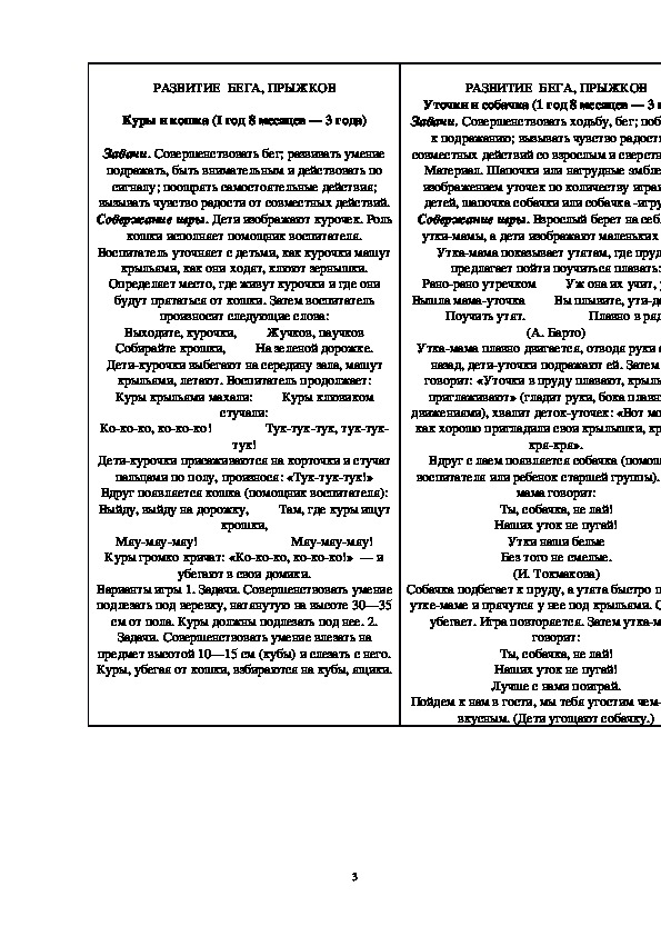 Комплекс подвижных игр для детей от 1 до 3 лет, с полным описанием , цель, задачи, содержание игры.Образовательная область -физическое развитие дошкольников.Развитие бега, прыжков.воспитывать у детей дружеские чувства и доброжелательные отношения; научить внимательно слушать воспитателя и выполнять предложенные им действия; закрепить навык обращаться друг к другу по имени; развивать творческие способности и двигательные навыки.развивать у детей познавательные процессы и волевые качества; закрепить знания детей об окружающем мире; работать над формированием грамматического строя речи; стимулировать мыслительные процессы; вырабатывать быстроту реакции.