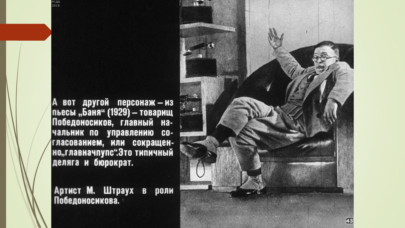 ОФОРМЛЕНИЕ: портрет Маяковского, иллюстрации к стихотворениям «Нате!», «О дряни», «Прозаседавшиеся», рисунки Окон РОСТА и фотографии из сцен спектакля «Клоп».