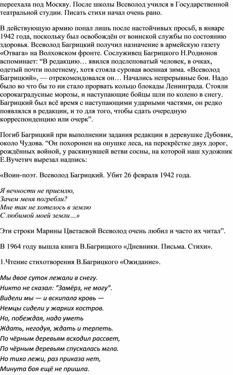 учащихся с творчеством П. Когана, М. Кульчицкого, В. Багрицкого, Н. Майорова;