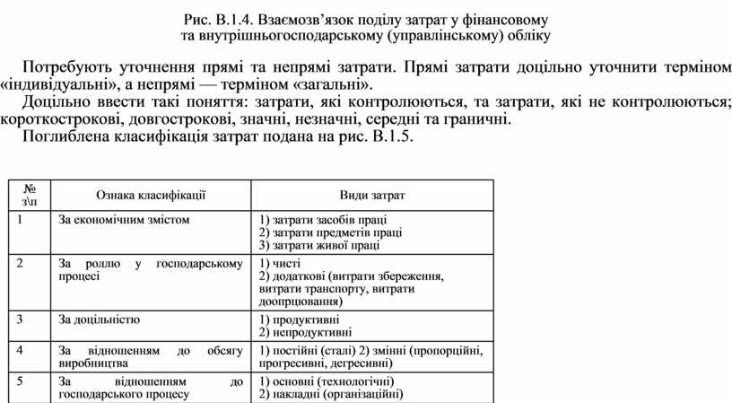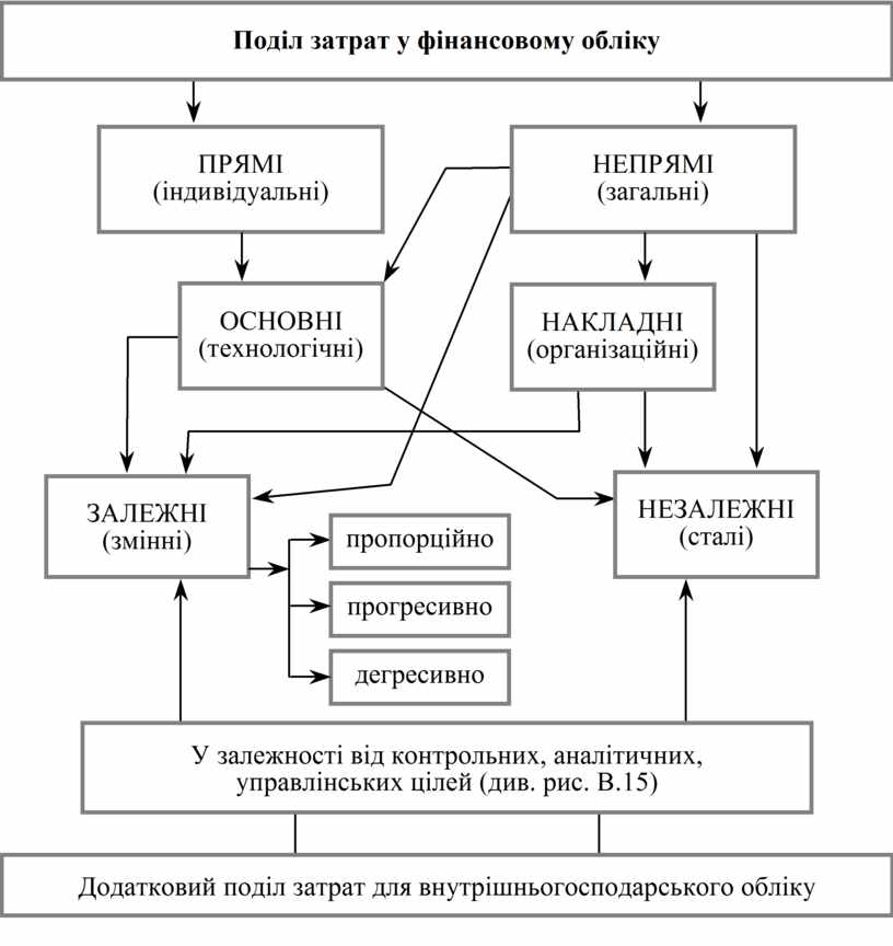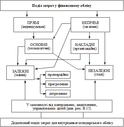 Рис. В.1.4. Взаємозв’язок поділу затрат у фінансовому