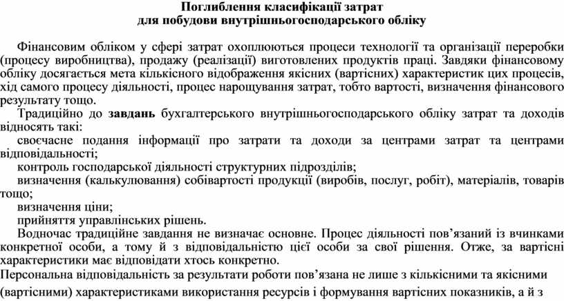 для побудови бухгалтерського внутрішньогосподарського обліку