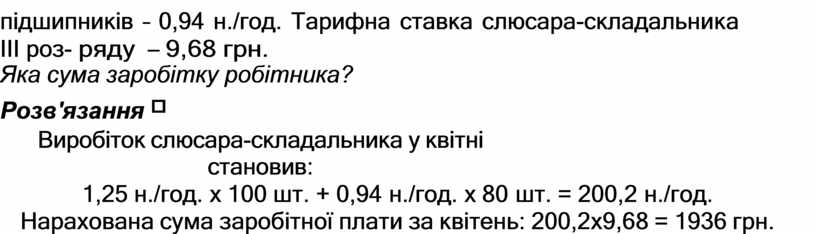 підшипників – 0,94 н./год. Тарифна ставка слюсара-складальника ІІІ роз- ряду – 9,68 грн.