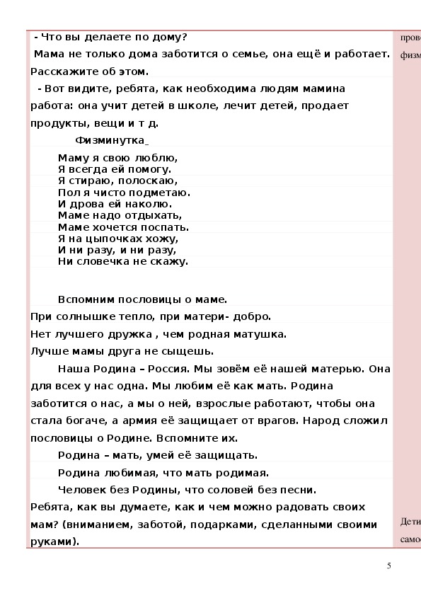 заботится о нас, а мы о ней, взрослые работают, чтобы она