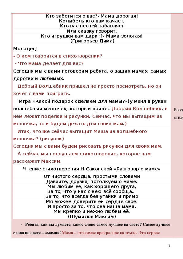 Чтение стихотворения Н.Саконской «Разговор о маме»