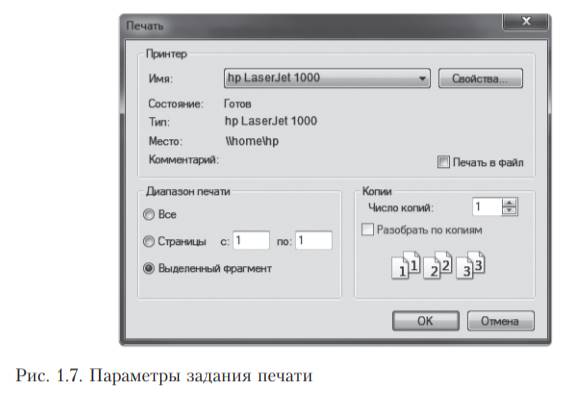ü в области Диапазон печати нажмите опцию Выделенный фрагмент и далее ОК (рис. 1.7);