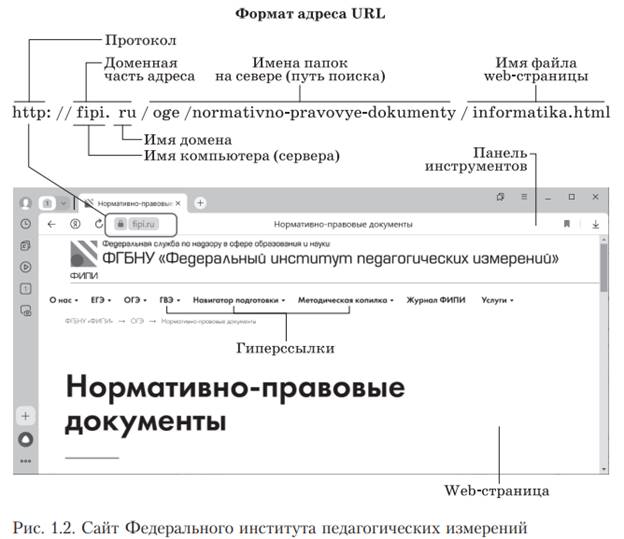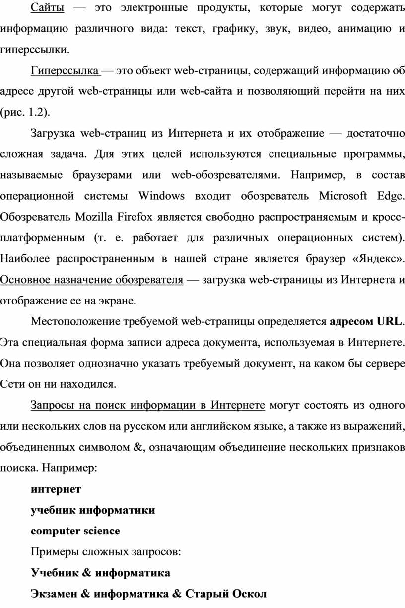 Гиперссылка — это объект web-страницы, содержащий информацию об адресе другой web-страницы или web-сайта и позволяющий перейти на них (рис. 1.2).