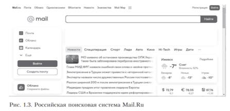 1.2. Откройте web-страницу поисковой системы Mail.Ru (рис. 1.3). Для этого в адресной строке введите mail.ru и нажмите Enter. Запрос вводится в поле для поиска. Для начала поиска по введенному запросу следует нажать кнопку Найти.