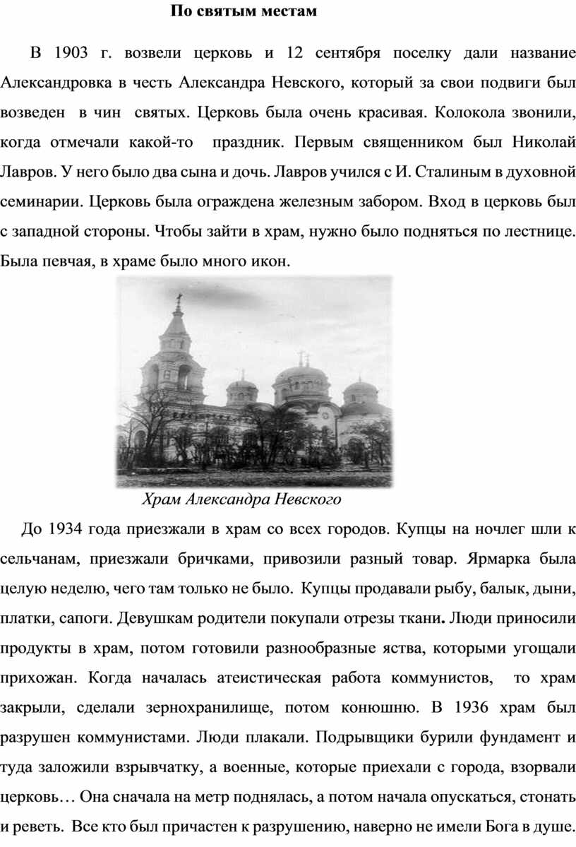 По святым местам 1.История православного храма в честь святого благоверного Великого князя Александра Невского |