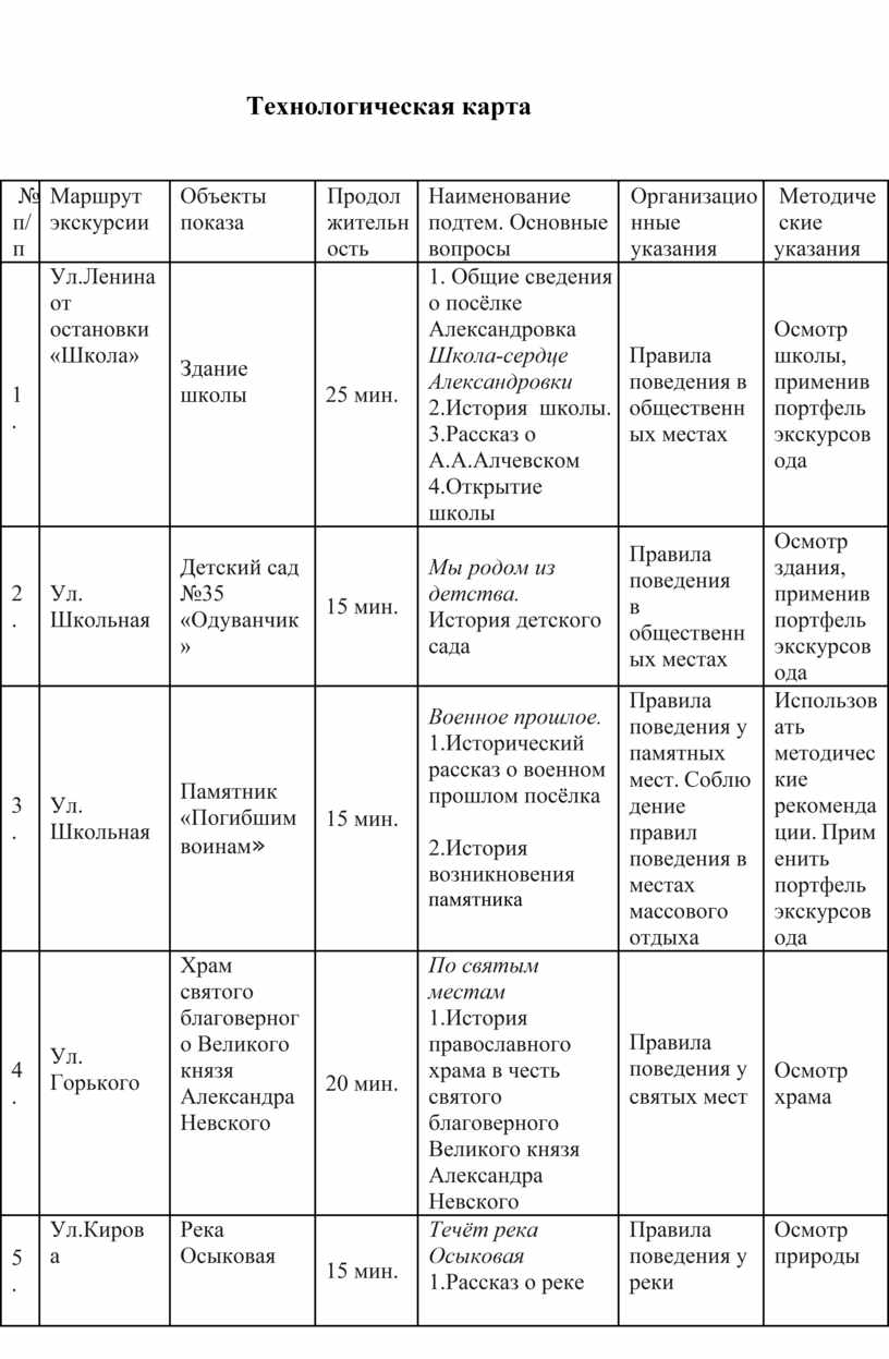 Технологическая карта