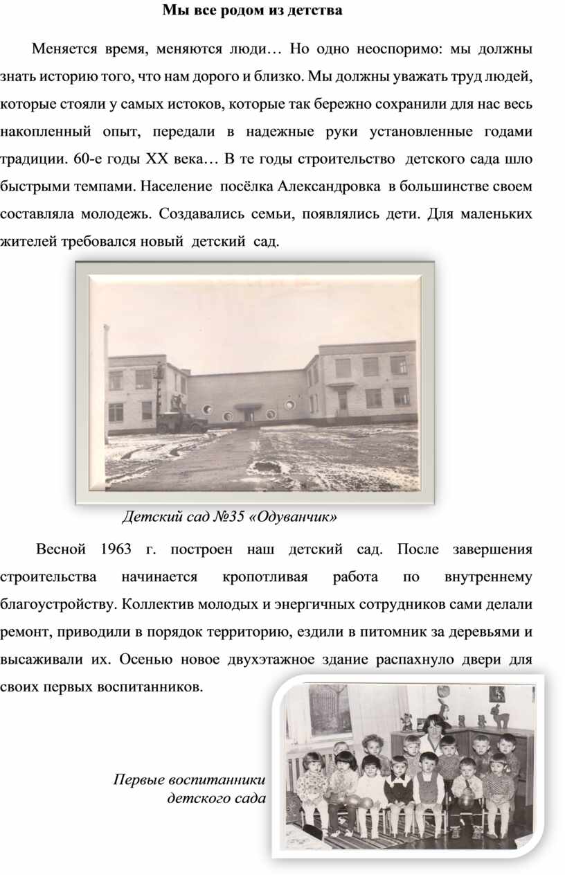 Мы родом из детства. История детского сада |