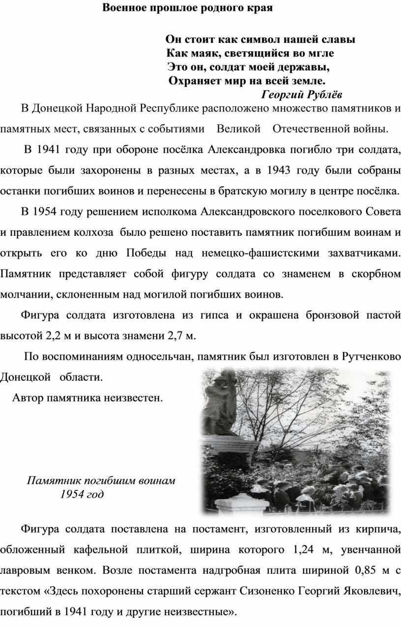 Военное прошлое. 1.Исторический рассказ о военном прошлом посёлка