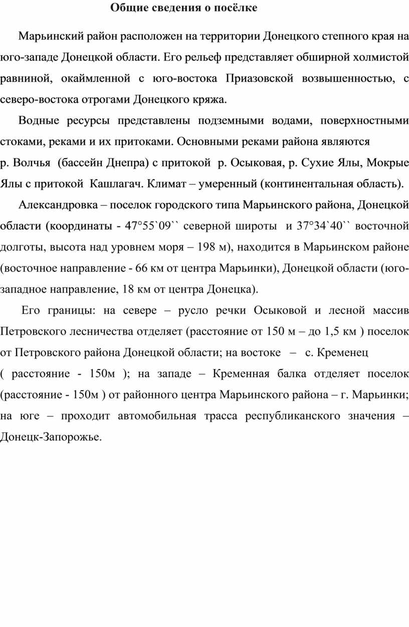 Территория – Донецкая область, Марьинский район, посёлок Александровка