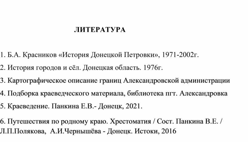 1. Б.А. Красников «История Донецкой Петровки», 1971-2002г.