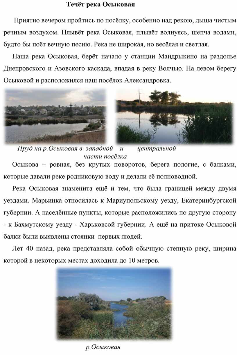 Течёт река Осыковая 1.Рассказ о реке