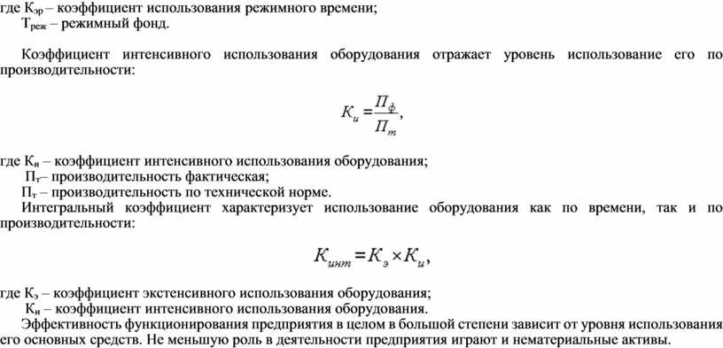 Коэффициент интенсивного использования оборудования отражает уровень использование его по производительности: