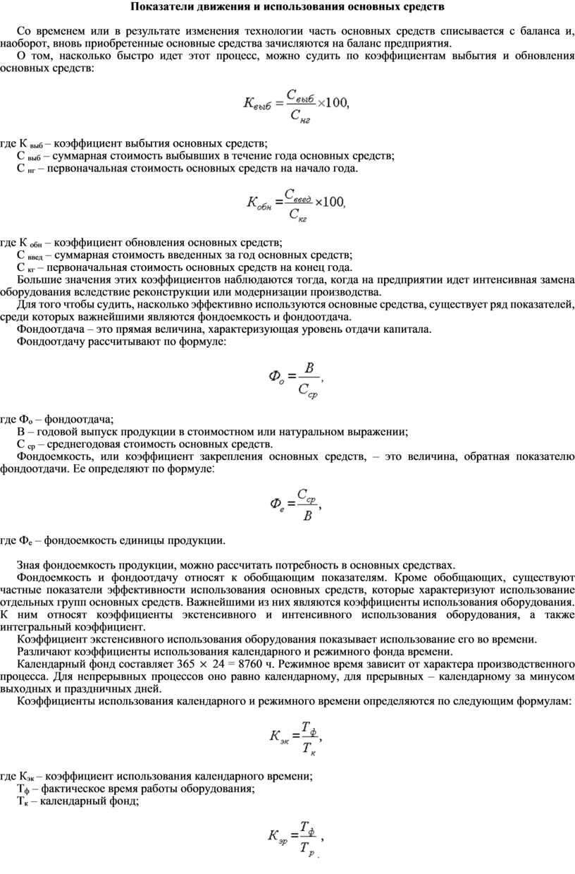 Показатели движения и использования основных средств