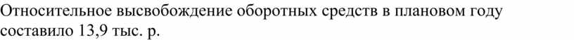 Относительное высвобождение оборотных средств в плановом году составило 13,9 тыс. р.