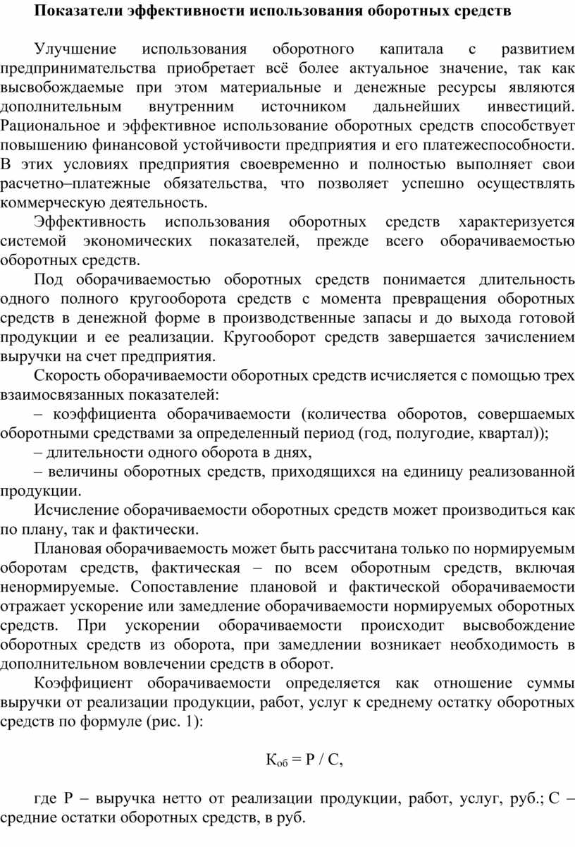 Эффективность использования оборотных средств характеризуется системой экономических показателей, прежде всего оборачиваемостью оборотных средств.