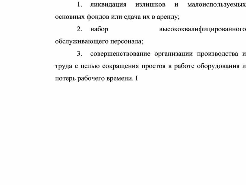 7. ликвидация излишков и малоиспользуемых основных фондов или сдача их в аренду;