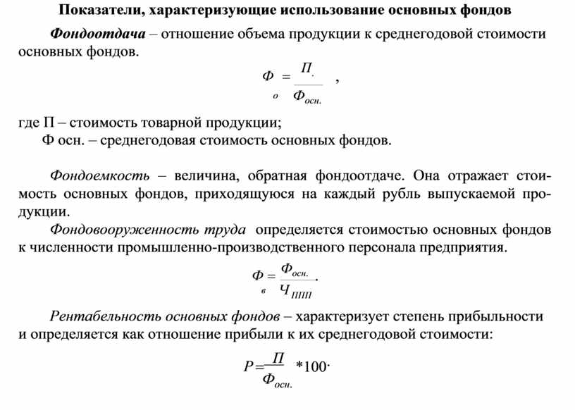 Показатели, характеризующие использование основных фондов