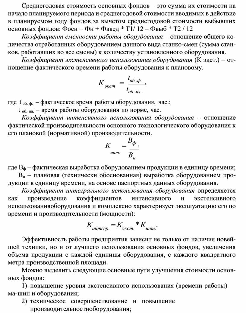 Коэффициент интегрального использования оборудования определяется как произведение коэффициентов интенсивного и экстенсивного использования оборудования и комплексно характеризует эксплуатацию его по времени и производительности (мощности):