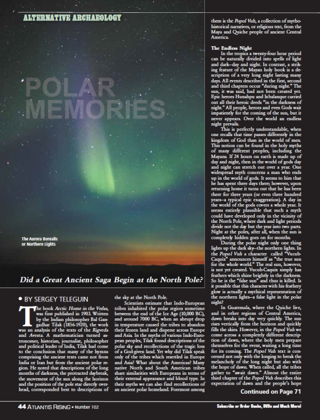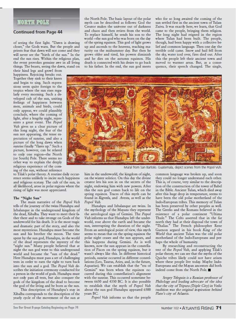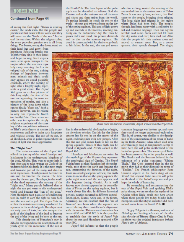 статья о полярном мифе в Пополь Вух опубликована на англ. яз. в журнале "Atlantis Rising"