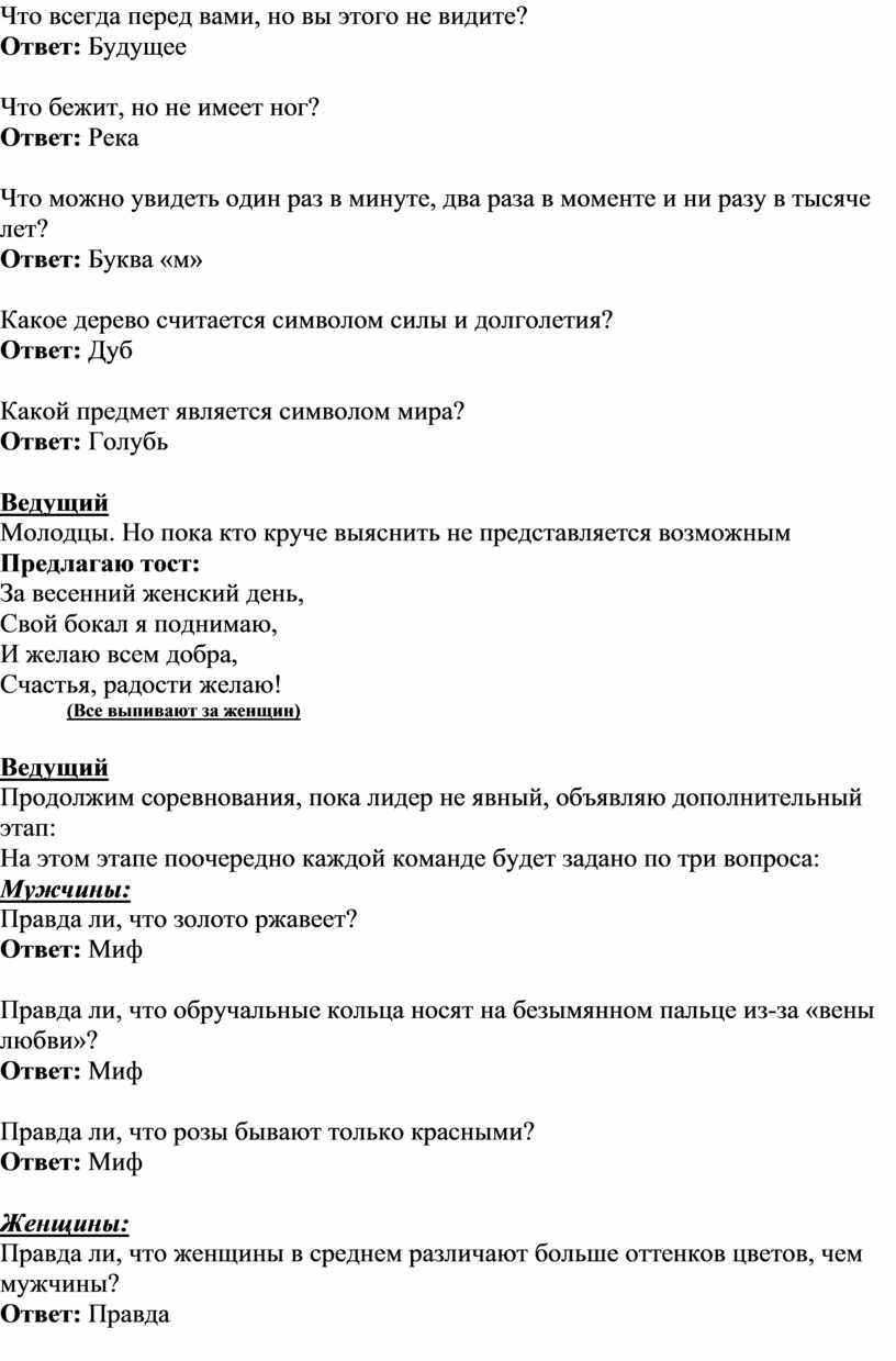 Наши ребята будут задавать вам вопросы, по очереди мужчинам и женщинам кто больше даст правильных ответов тот круче.
