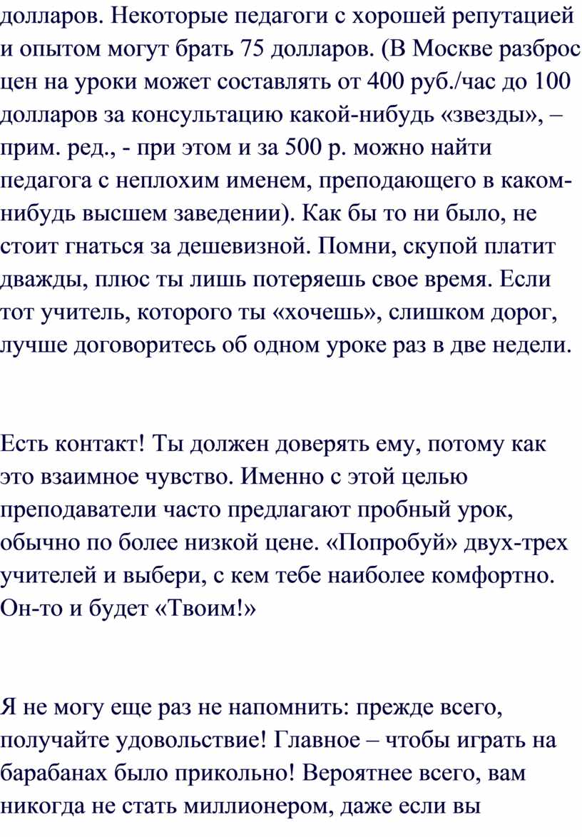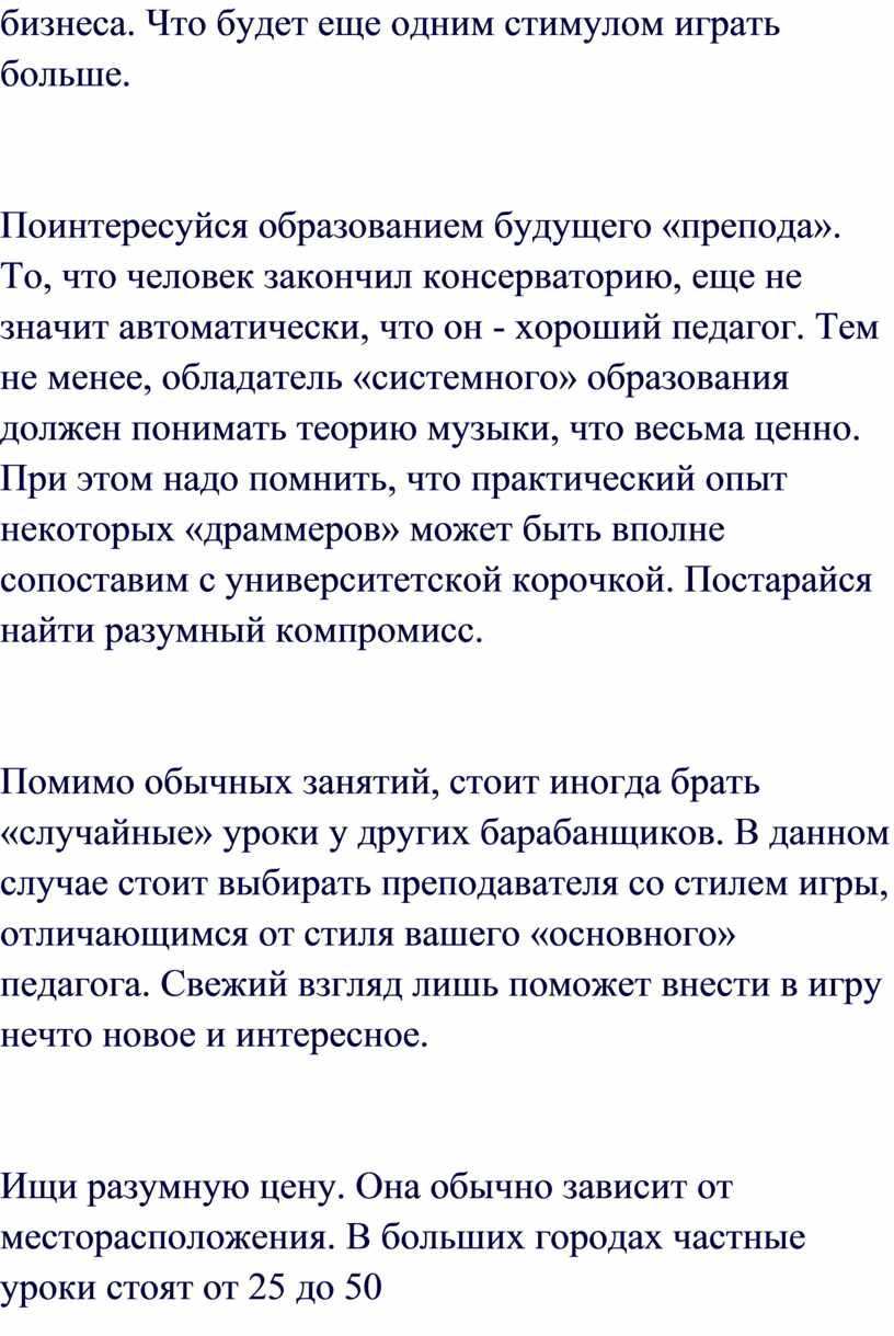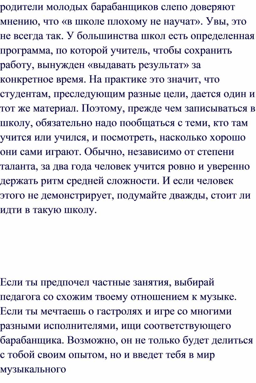 (даже к тем, которые не собираются стать профессиональными музыкантами)