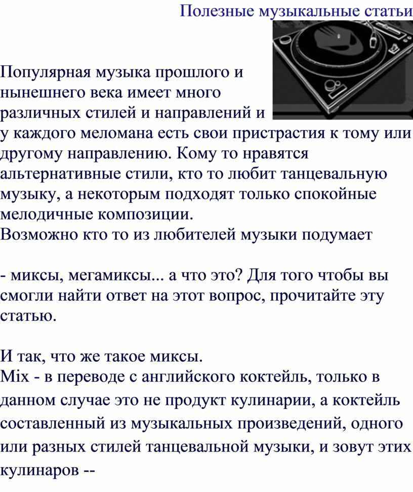 Статьи о музыке » Полезные