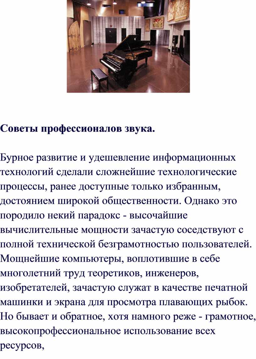 Эволюция домашней музыкальной студии (Советы профессионалов звука.)