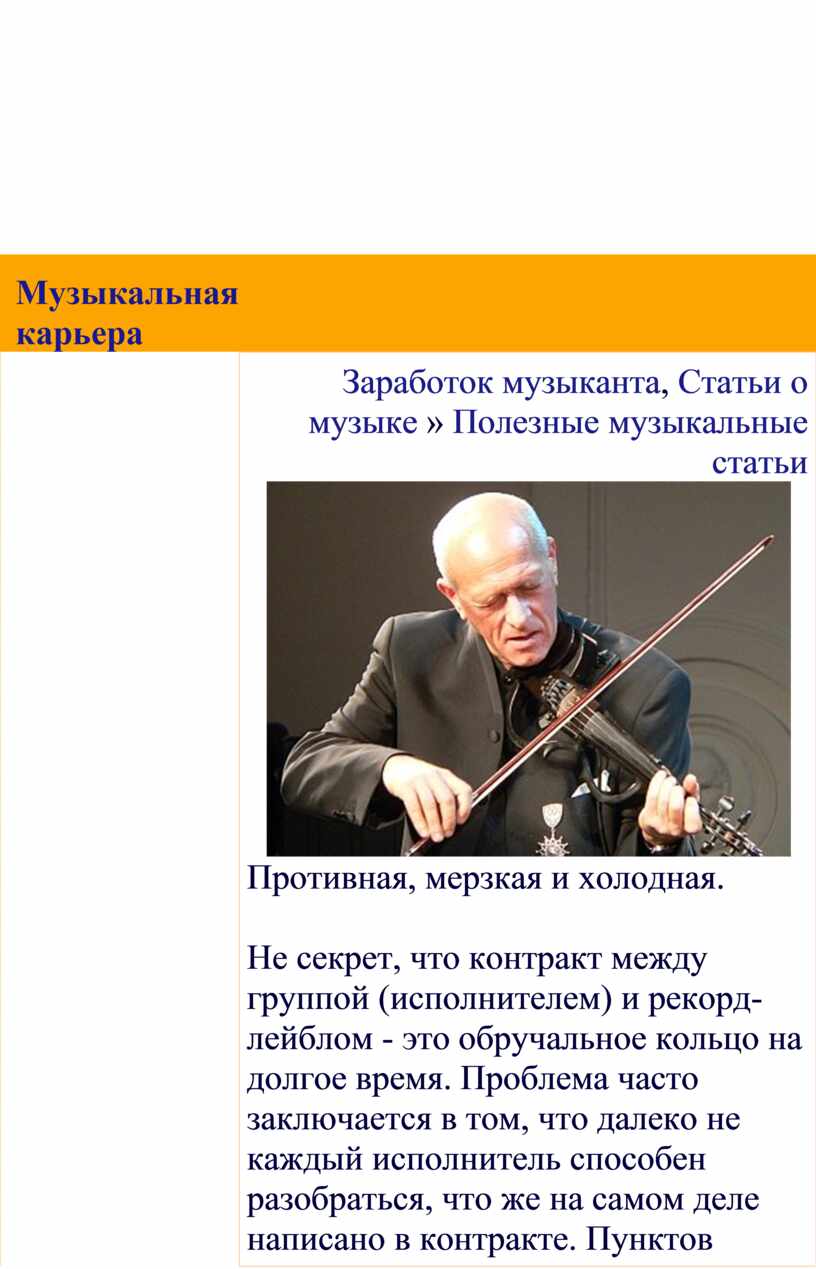 Заработок музыкантаСтатьи о музыке » Полезные музыкальные статьи